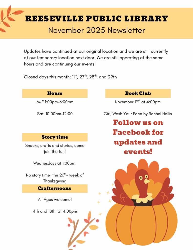 Copyright © 2025 Reeseville Public Library — Scribbles WordPress theme by